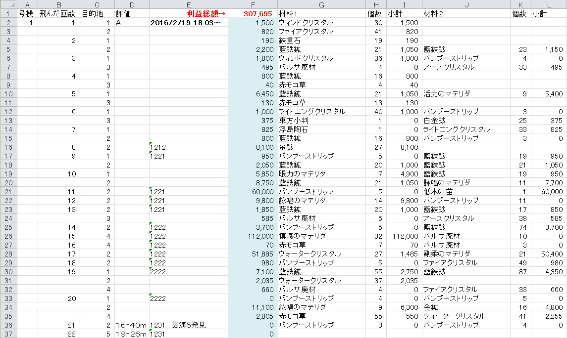 もし飛空挺が8艘あったなら収益がこの2倍だったと思うと、もっと早くに2軒目の家買っておくべきだったなーと激しく公開orz