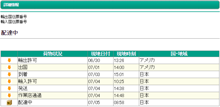 受け取り時に支払った、詳細不明の税金。(関税では無いぽい。消費税?) 5,400円