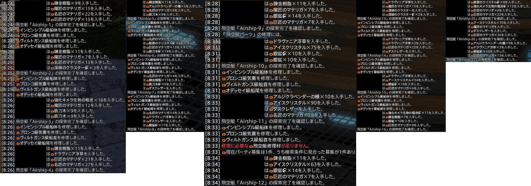 19機合計、魔匠マテリガ60個(現在価格26k)、巨匠マテリガ125個(現在価格30k)、名匠マテリガ121個(現在価格6k)、巨匠マテリダ44個。