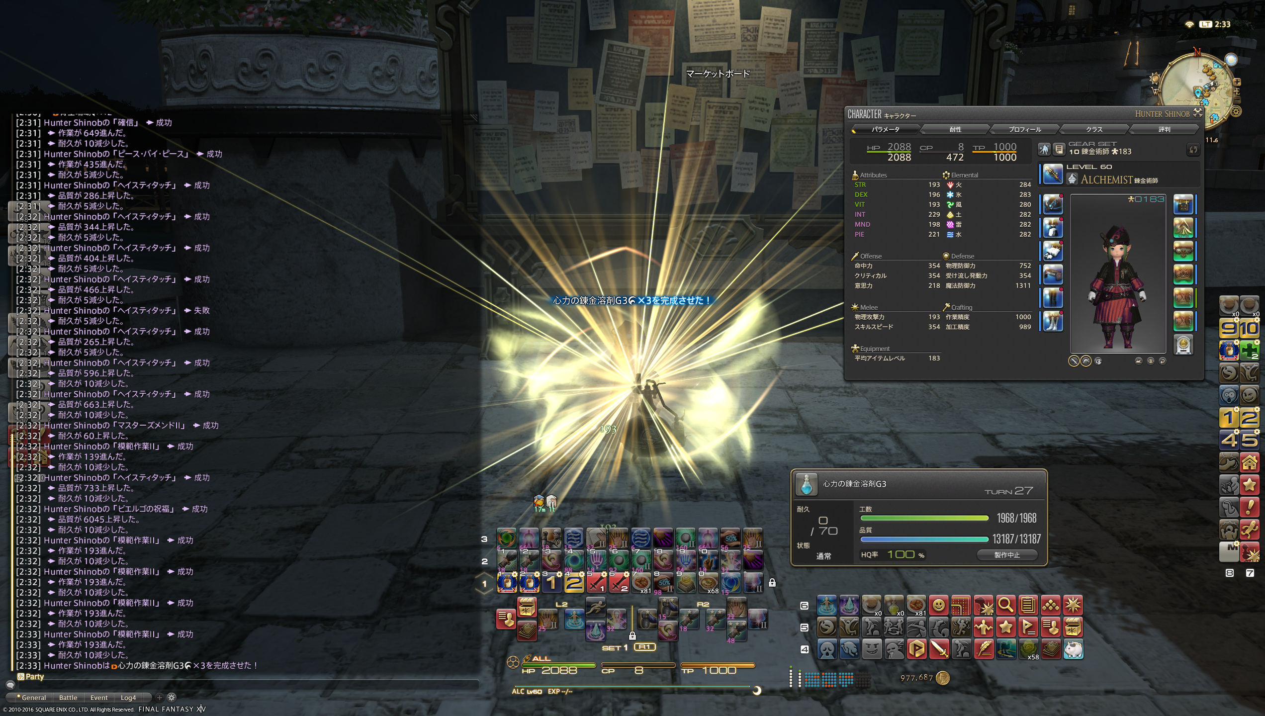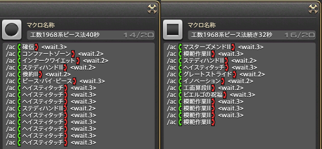 投稿日: 2016/09/28/ 02:46:29 投稿者: にゃんこ必要工数1968レシピ(ピース法) ヘイス8回とか恐ろしすぎるんで、観念してピースバイピースに変更orz アートオブのこだわりを捨てるのが非情に悔しいッ;; やっぱこっちの方がお気楽だよなー。簡単にマクロ組めるしw