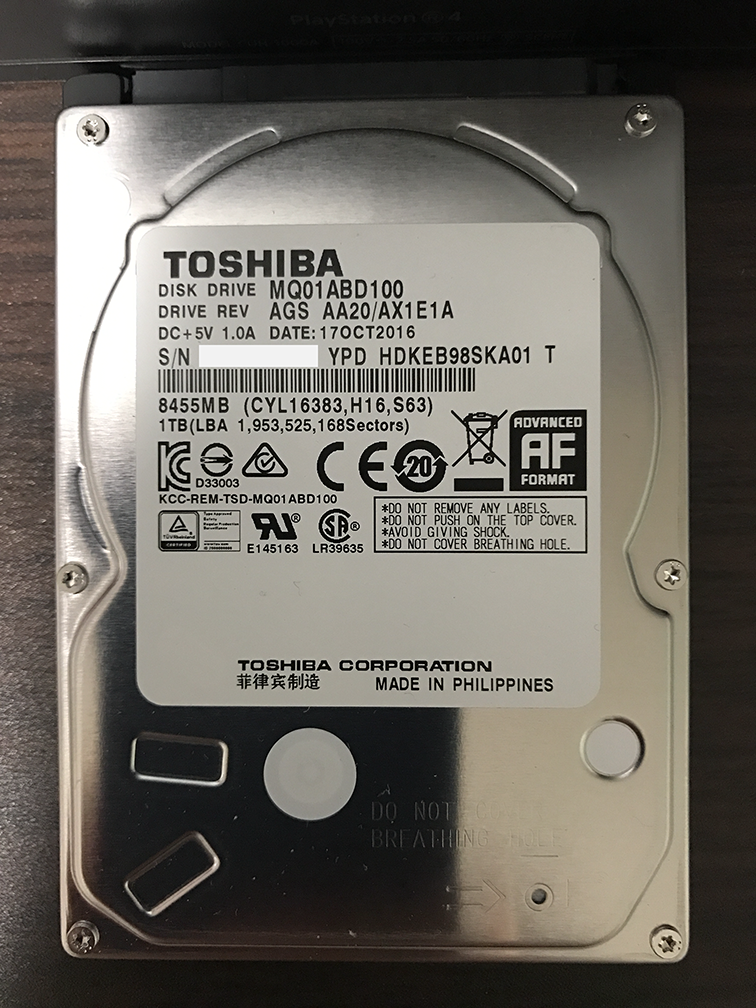 PS4 Pro(1TBモデル)から外したハードディスク。