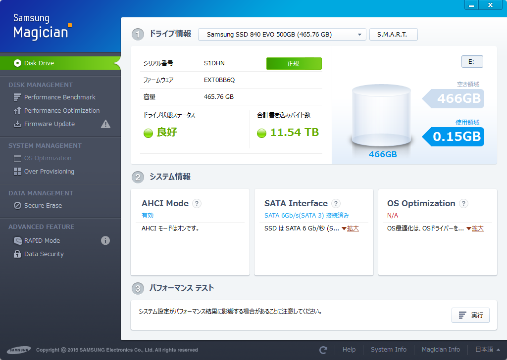 初代PS4のハードディスクを、2014/03/18にSSDへ換装した時の、サムチョン840EVO500GB(44TBW)の詳細がコレ。
