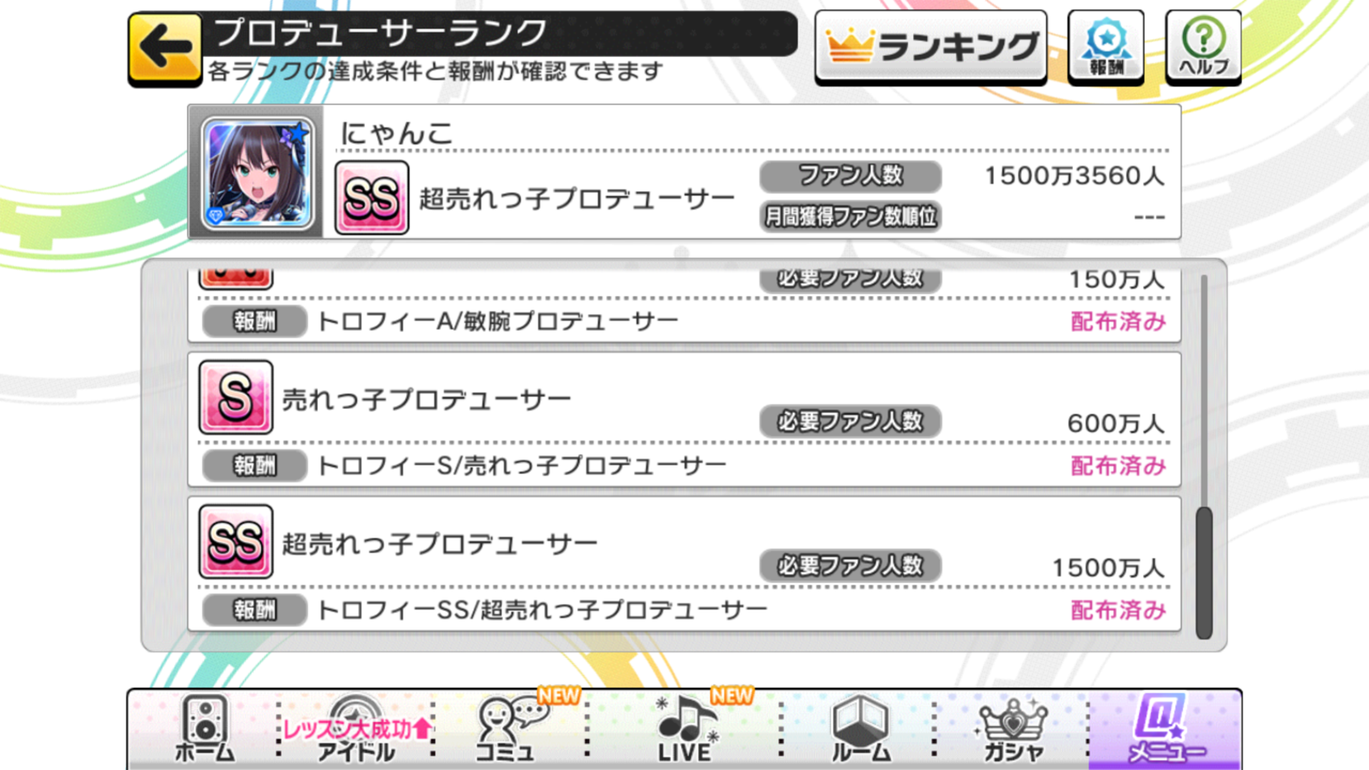 ここまでずーっとやりこんできて、やっとファン数1500万人を超えた所なんだけど、