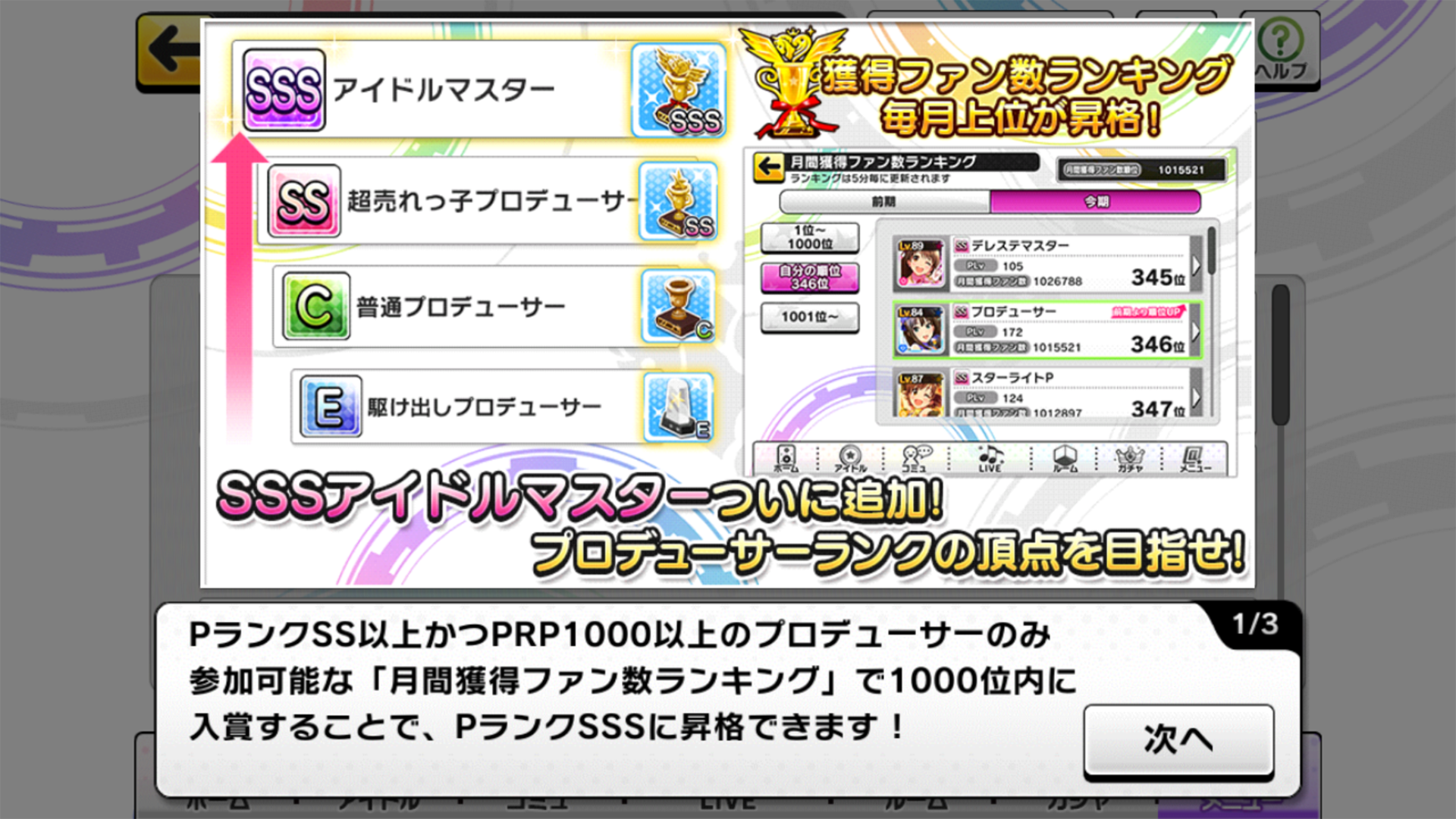 やっとこれで念願の、デレステの闇と奥の深さを思い知る事になる上位者専用ランキングに突入(条件を満たしただけ。来月から本気だす………