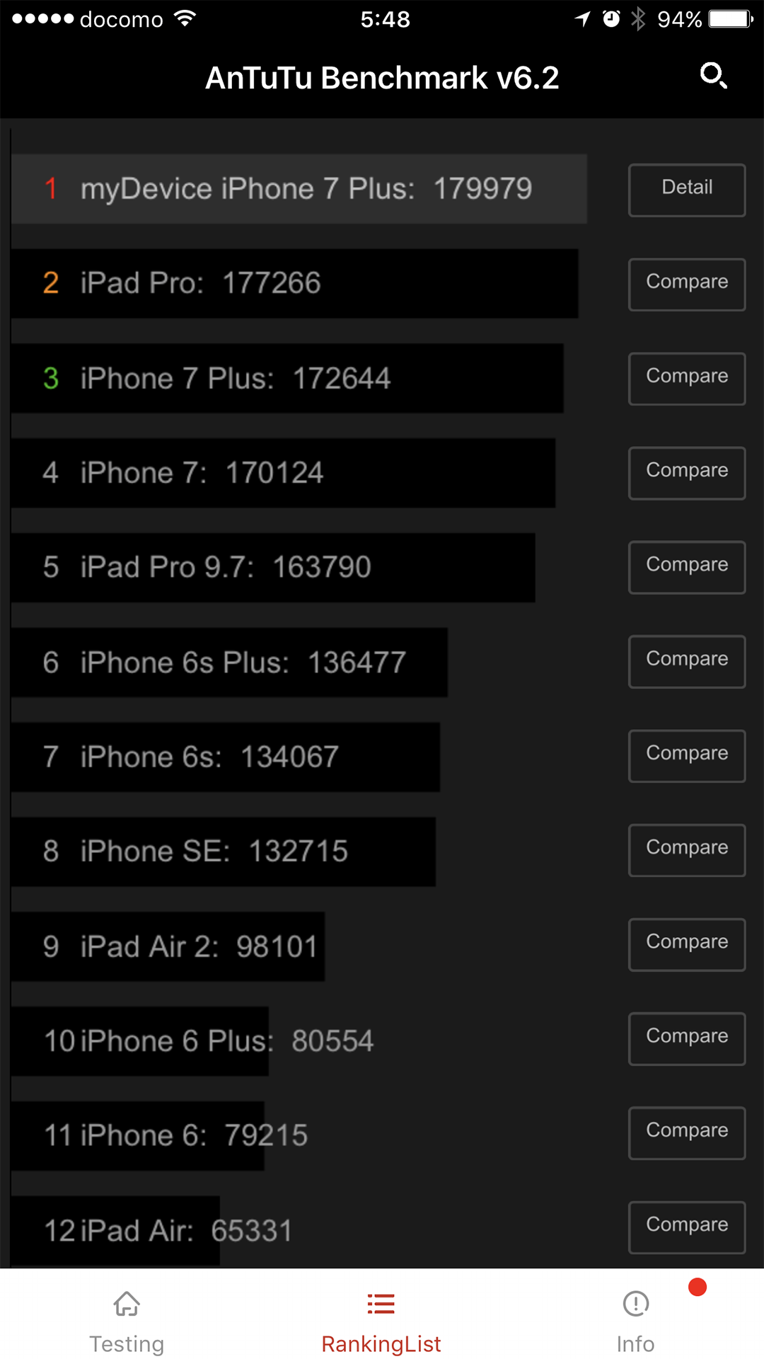 華麗にXperia Z5 Premiumの倍以上のスコアをたたき出してくれるiPhone7 Plus萌えww