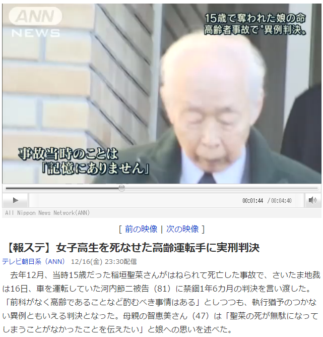 もし他人を殺したボケ老人どもが生存してしまったら、人殺しだってのに、ウンが相当に悪ければ実刑、それもたったの1年半とかね、もうね。