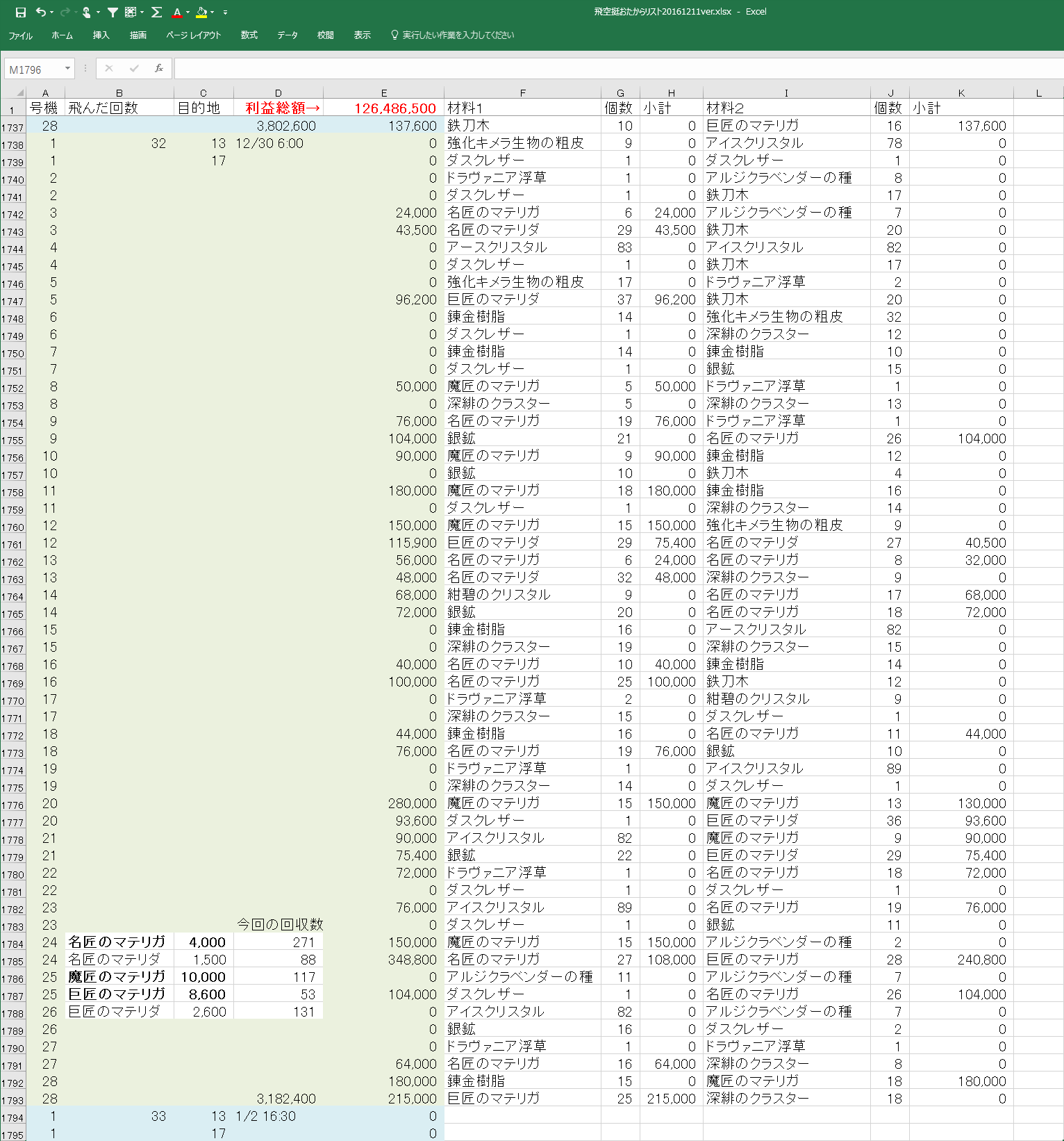 今回もひでえなぁ……… マテリガの収穫量は、中の人のやる気に比例してるんだろうか?w