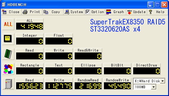 まー、ネットで予め調べておいた情報ではアダプテックの12万のカードに乗ってるインテルのチップはベンチマーク結果がとてつもなく悪くなるとあったので、同じチップ使ってるコレも表示はこんなもんなのでしょう。