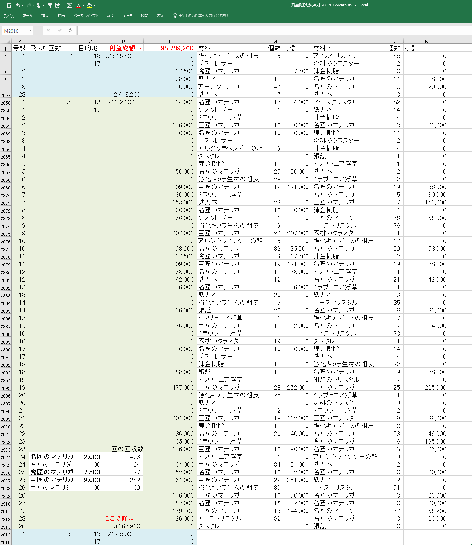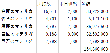 投稿日: 2017/03/14/ 01:15:342017/03/14/ 04:42:57 投稿者: にゃんこ3/13 22:00収穫メモ マテリガ所持数メモ 名匠16,611個、巨匠9,188個、魔匠4,797個 マテリダ 名匠4,701個、巨匠7,798個 やべーな、増える一方だわさ。6月の新パッチ出た時点で需要が無かったらわたし終了www