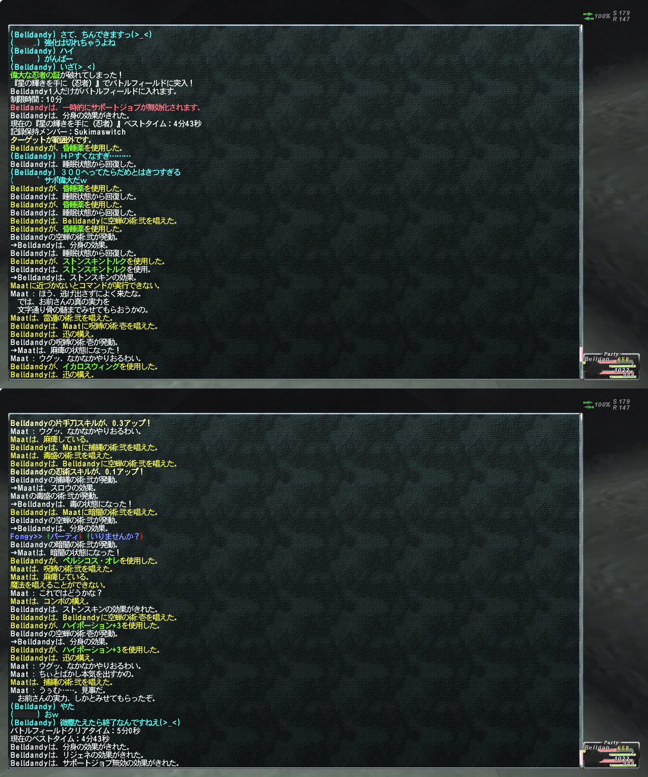 コンボで多少減ったので、ハイポ2つとオレ使ってTP貯まったところでまた迅、ほぼ同時にジジィの微塵が来てそのまま終了しました。