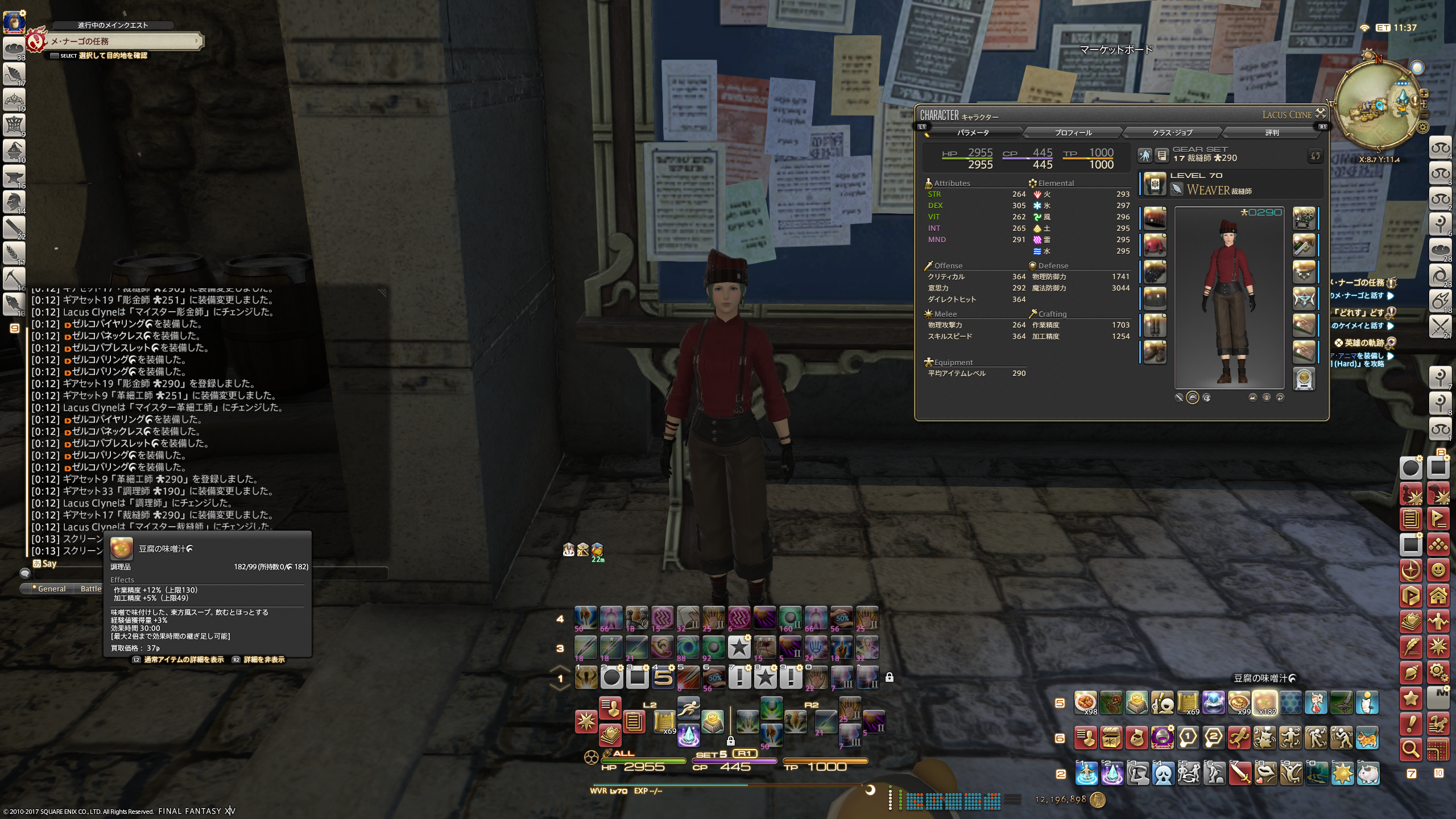 投稿日: 2017/06/22/ 12:17:572017/06/22/ 12:18:26 投稿者: にゃんこ久々のFF14記事 クラフターIL290記念w アクセは作らなくてもいいか?とか考えてたんで作ってなかったんだけど、素材作りまくってる間に これってアクセはハイマテリジャのために、禁断せずに使い続けていた方がいいんじゃ??って閃いて、急遽作成(>_<)ノ 想定外なレベルで禁断上限値が高すぎて、軽くド禁断しただけでも食事込みで 作業制度1700オーバーという不具合www マジかこれwwwww ただ、喰ってるメシの性能もまたチートなみw
