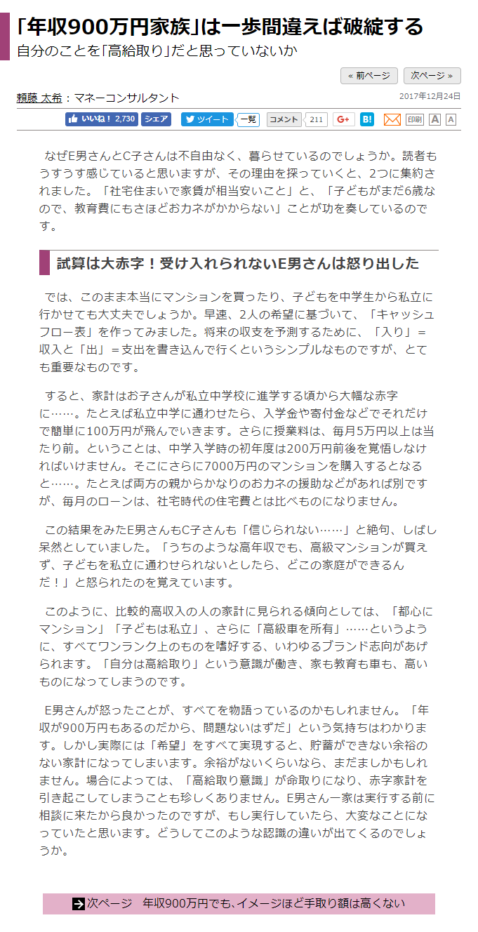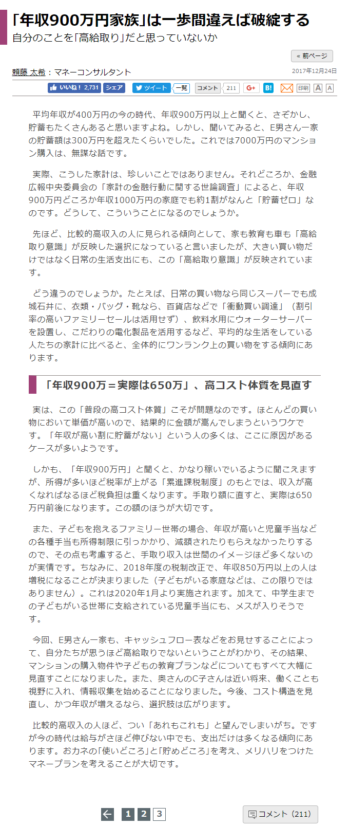 最近の記事は、年収1,200万でも貯金が無いなら一瞬で破綻するとか、老後がみじめだとかって記事ばっかで(^^;