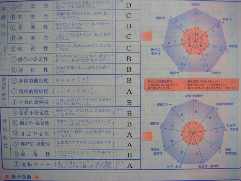 で、だ。性格診断のOD式安全性テストの結果が出てきましたよっと。