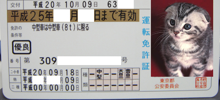 今日の検定受検者は、大型4名、中型8名………かな………確か(>_<) 全てのコースを回り終わってから、検定員のワンポイントアドバイスが出るんですが 『セカンドにあげるべき所をローでずーっと走ってたでしょう? あっちの直線も3速まで上げてもいいんじゃないですか? もう少しメリハリを持った運転を心がけてください』とか言われてしまったっ(>_<) たしかーに、信号と見通しの悪い交差点から一時停止に続く、3カ所短い距離で停止しなくてはならない直線で セカンドにあげるのがめんどかったからローのまんまひっぱったし、 外周の工事中を装った障害物を車線変更する長い直線も、手間が増えるのを避けてセカンドで延々ひっぱってましたとさw でもね、400ccの時も全く同じように走っていて合格したし、セカンドにあげるべき所をローで走ったからといって それといった罪状も、減点内容もネットで調べておいた限りでは存在しないんですよ?(>_<) さて、猫丸君のなかの人(猫?w)は、合格出来たのでしょうか?(>_<)