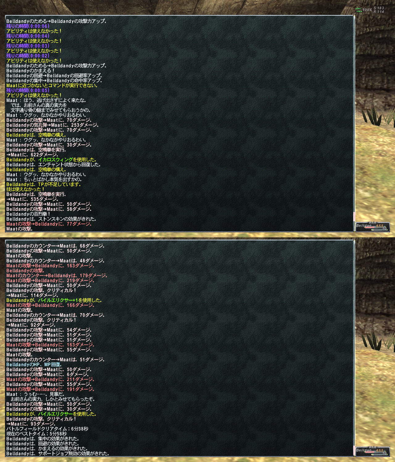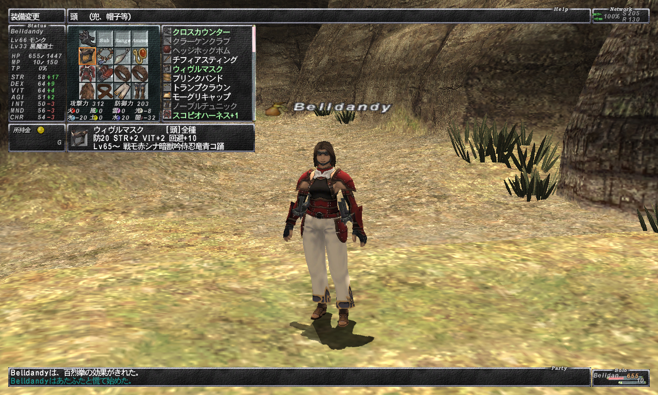 むむむ、なんとあっけない………うかつにもいつ終わったのかログ見てる暇すらありませんでした(>_<) ポーション23個も持ってったのに1つも使わないとはorz かさばる?w これまでに倒したジョブが狩戦暗赤詩竜黒白ナ忍侍シモ、あと獣召の2つ。ふぉぉぉ、寸前でござるよ(>_<) ゴールテープが見えてきたよママン(>_<) 66でマートしばいたジョブは詩竜ナ忍モの5職。これらは気が向いた頃にお会いしましょうw っていうか、モンクレベルあがるのはやすぎwwwww ちっとも誘われないのにこれだw
