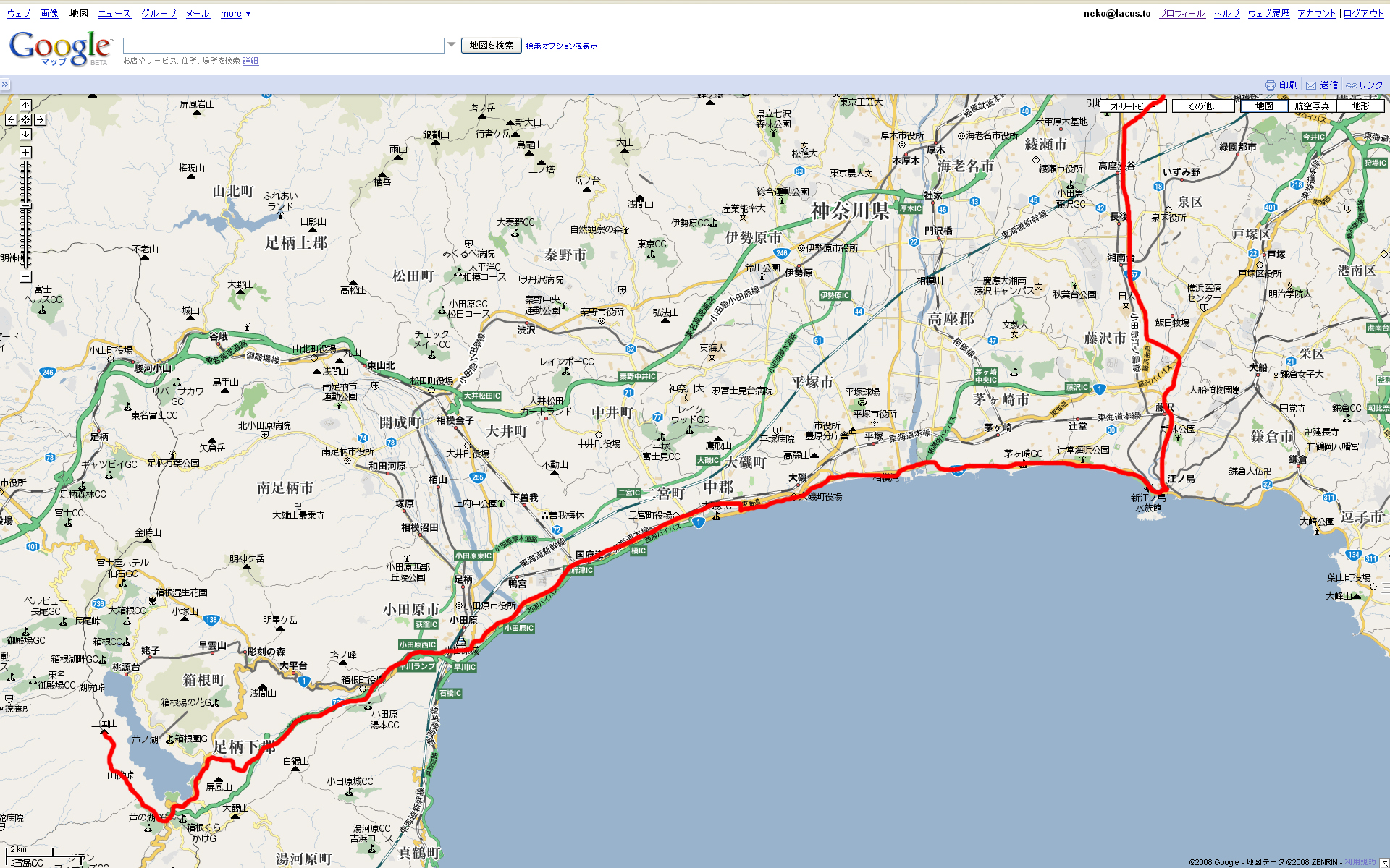 たぶん大磯ロングビーチの辺りでキレて、1本右側の海岸線の(134号)へ道路変更。