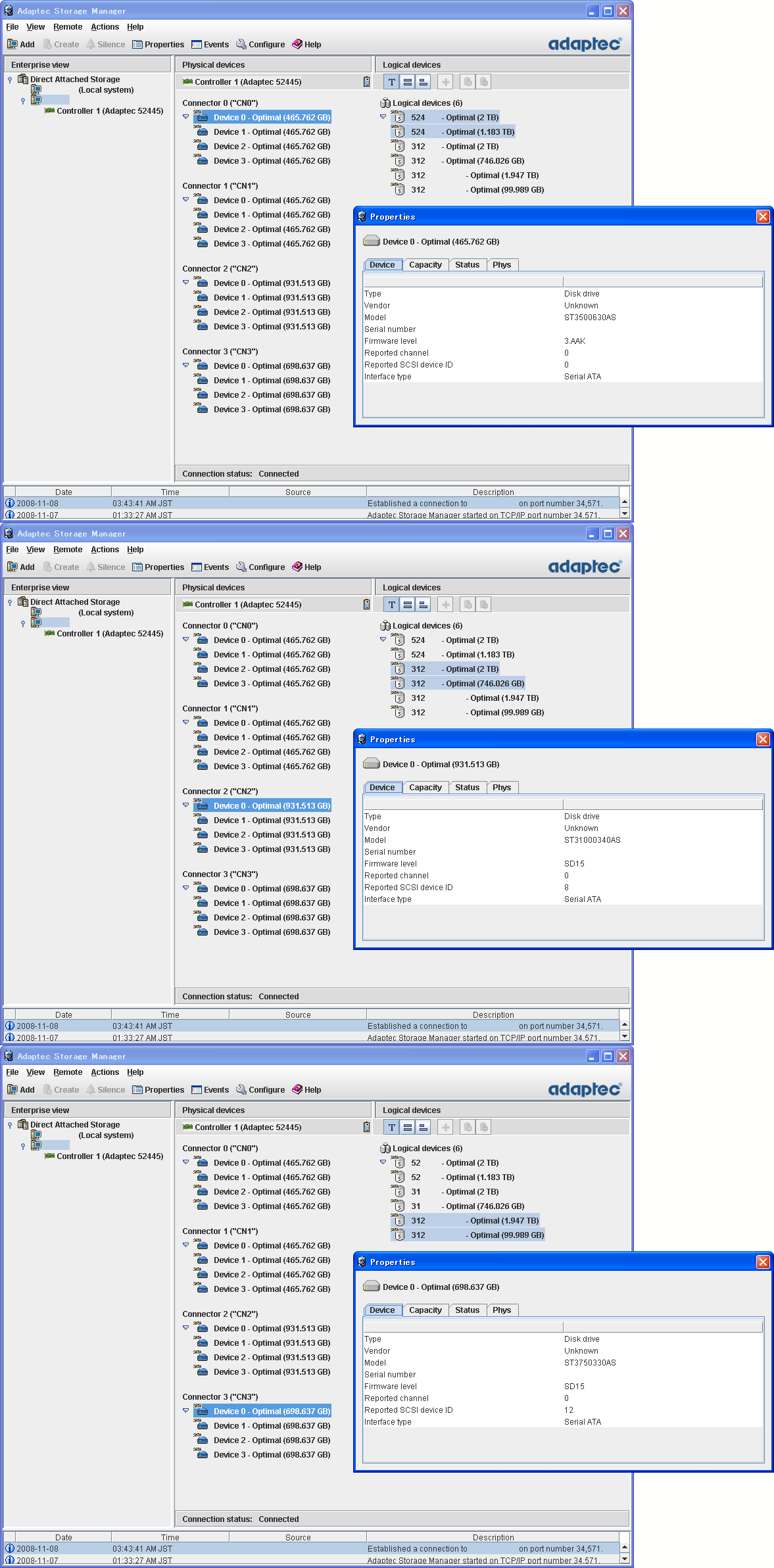 でもね、ウチのAdaptec Storage Managerのスクリーンショットでも見て貰おうか。