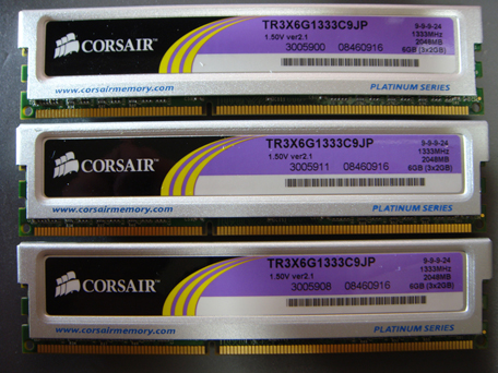 コルセアメモリ PC3-10600 ¥23,980? メモリはDDR3の2GBx3セットだけど、もう安いんだか高いんだかわからんわw