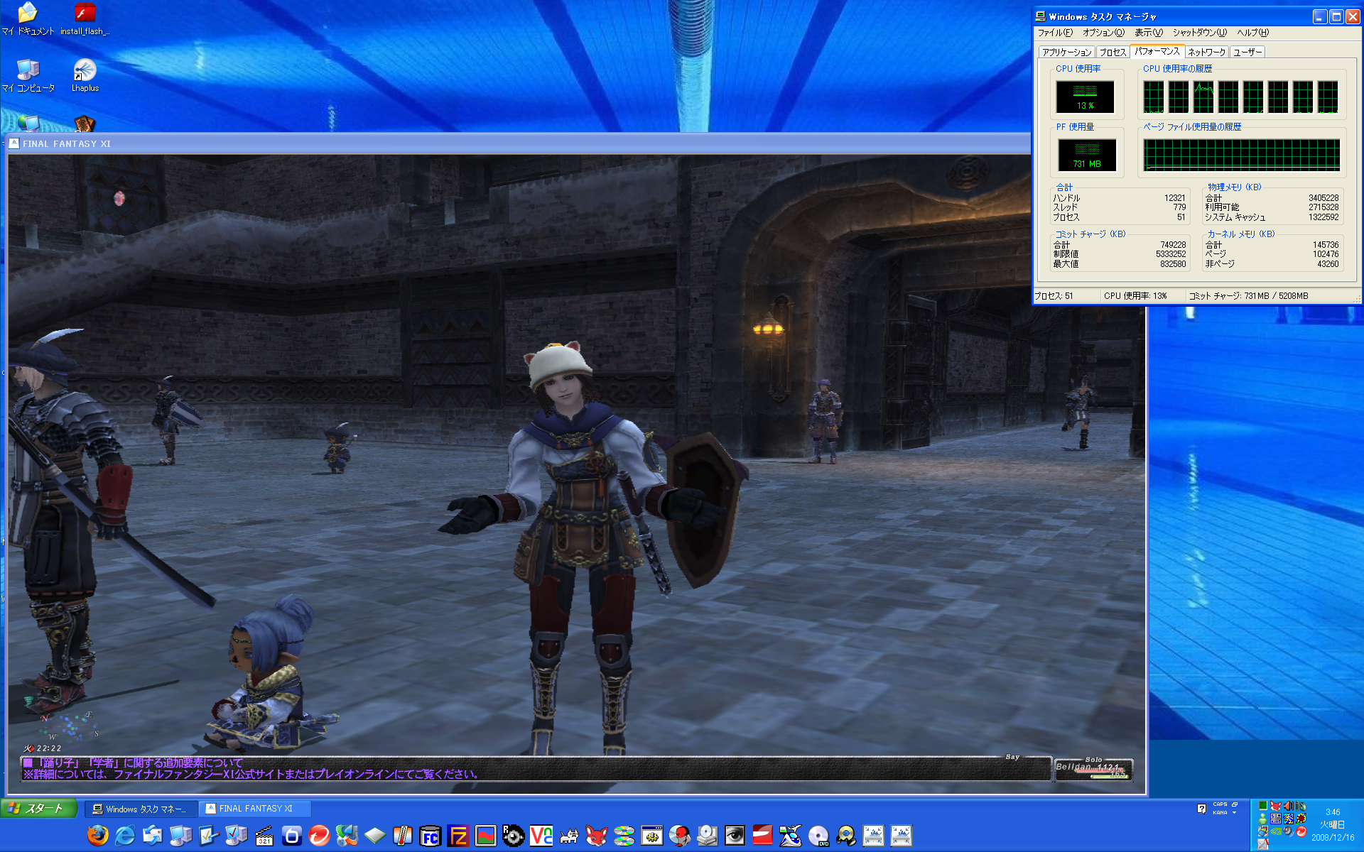 このSSはCore i7でMToffの時の物ですが、Core2Duo/Quadの時もこれと似たようなカンジとなり、FF11起動時の